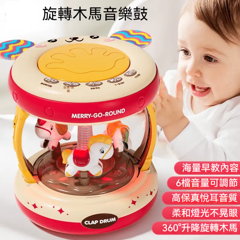 寶寶的多功能旋轉木馬手拍鼓來了!旋轉木馬+音樂燈光秀,可手拍,可充電✅360度旋轉木馬✅採用環保ABS材質 ✅功能豐富---兒歌+音樂+燈光+童話故事等