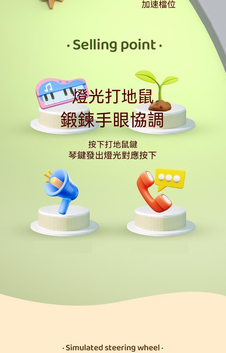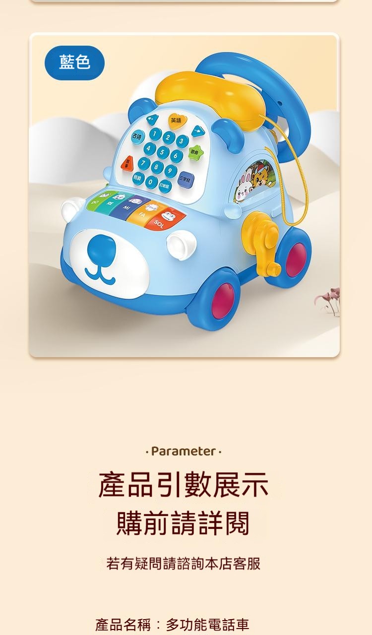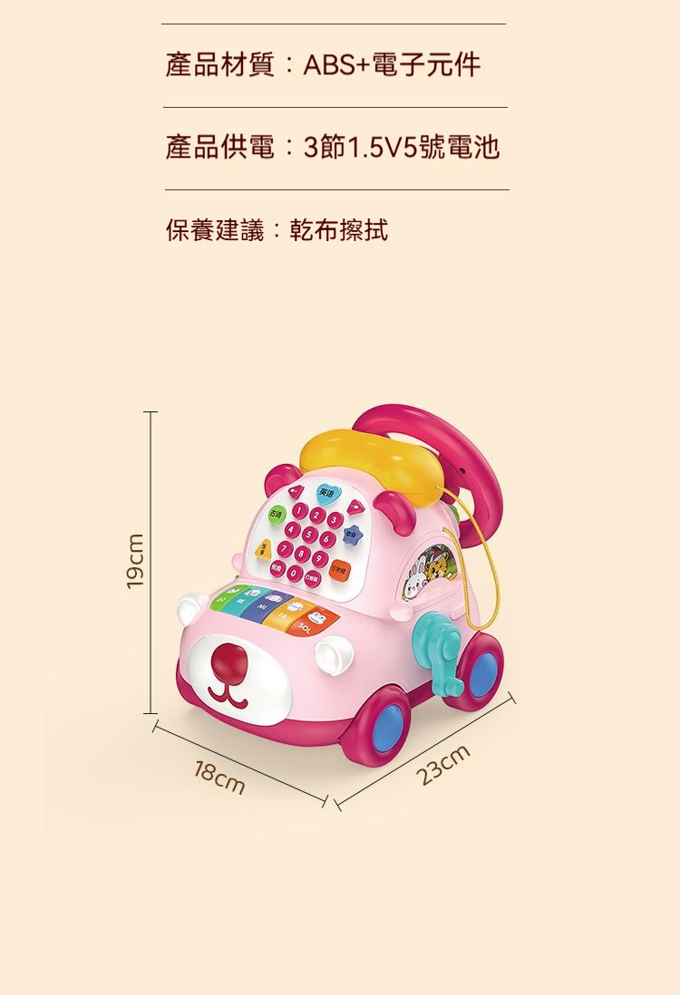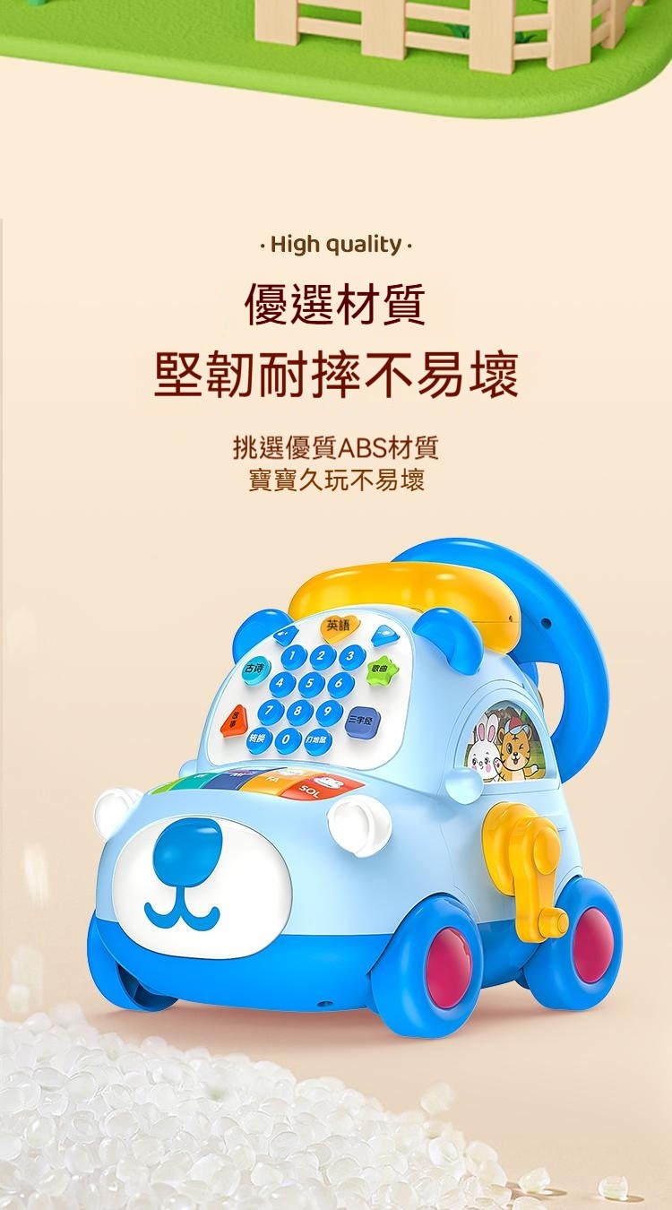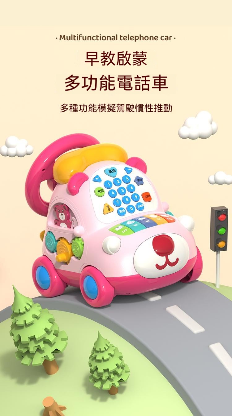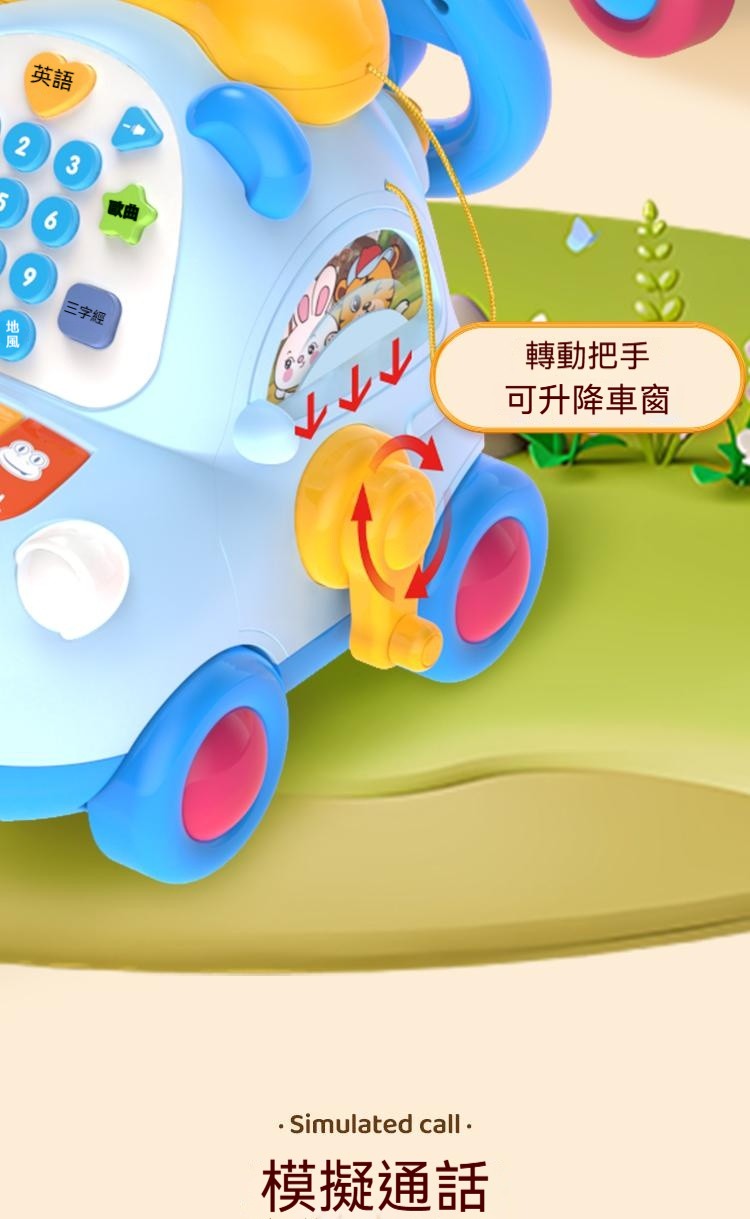 寶寶的高級玩具來咯來咯---多功能電話車,功能豐富,可數字啟蒙認知+早教 ✅多種娛樂玩法,故事+打地鼠等 ✅ABS材質,無毒無異味 ✅趣味方向盤,可加減檔 ✅耐用電池+可充電式