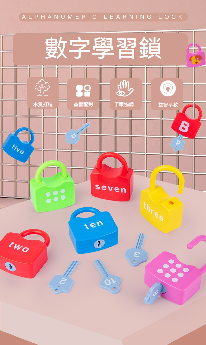 趣味數字開鎖玩具來捕獲每一個小朋友的心,正確數字鑰匙配正確的數字鎖才能打開哦 ✅數字認知啟蒙+手眼協調加強+益智配對 ✅趣味玩法,英文字母數字 ✅木質打造,無毒+無異味