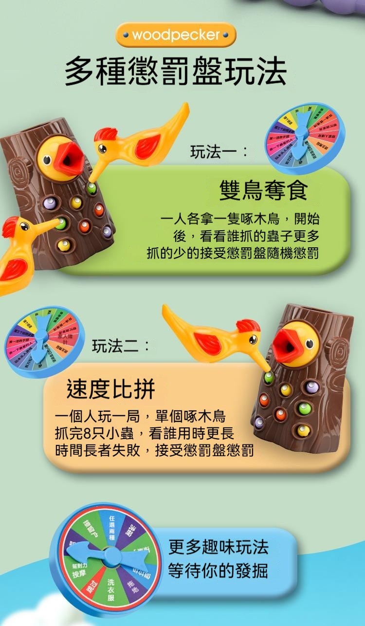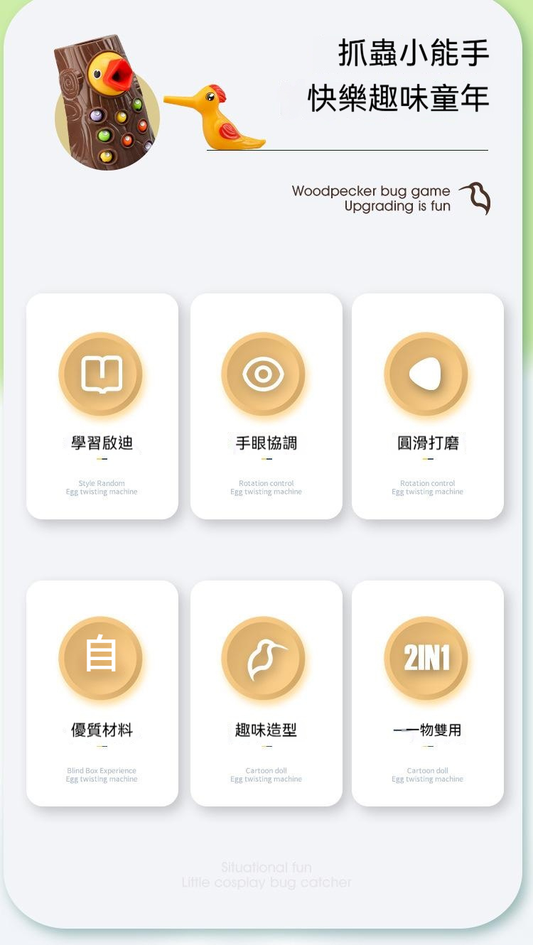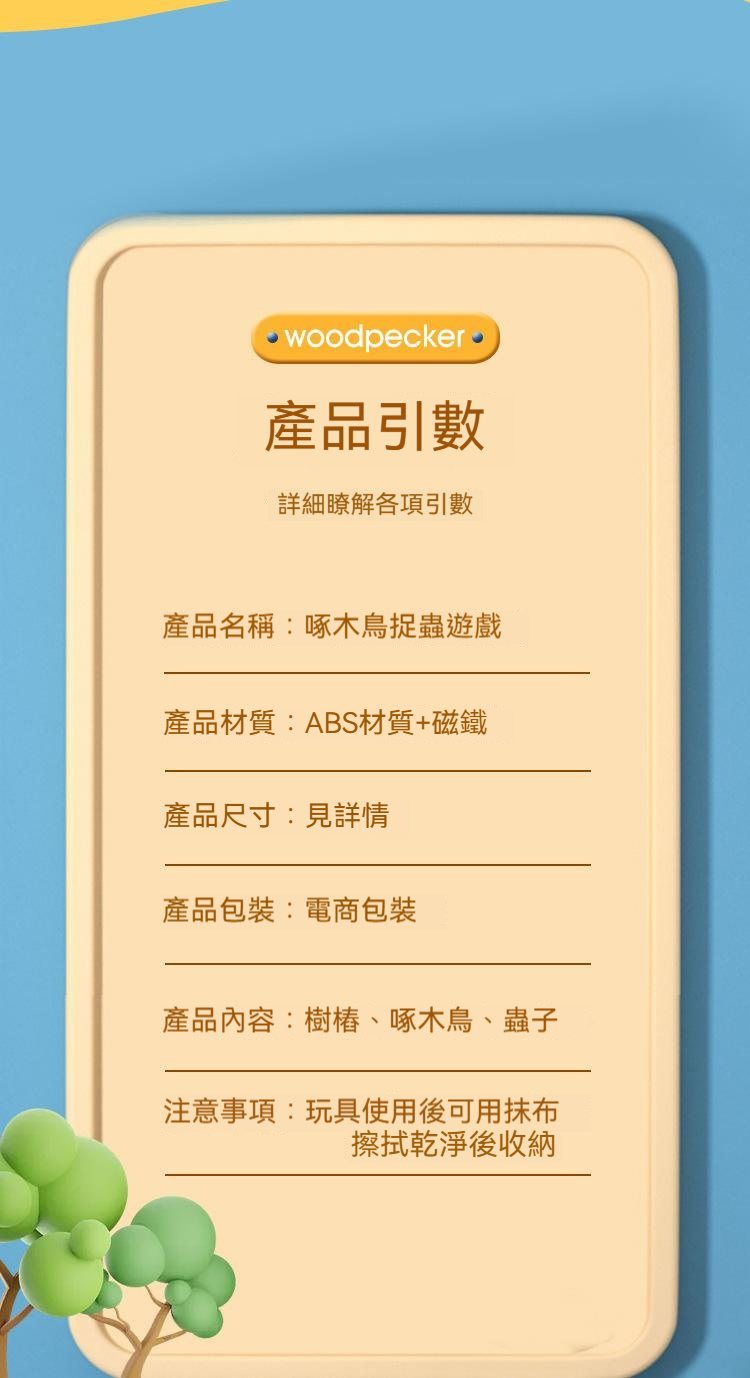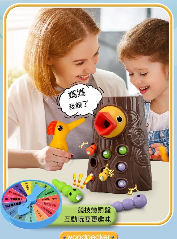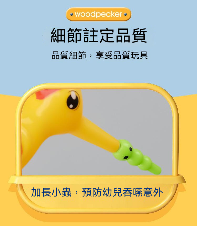 長滿了蟲子的樹在等待著啄木鳥的出現,啄木鳥清蟲行動開始!啄木鳥捉蟲玩具寶寶輕鬆上手 ✅ 鍛鍊小手靈活度+手眼協調能力 ✅ 培養超強專注力 ✅採用安全無毒材質